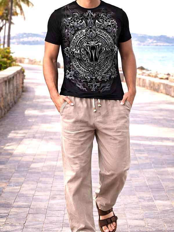 Abbinabili a qualunque t-shirt o a una camicia, i pantaloni estivi di cotone peruviano trovano un perfetto outfit uomo estate se abbinati a una t-shirt o a una bella camicia in contrasto di colore: