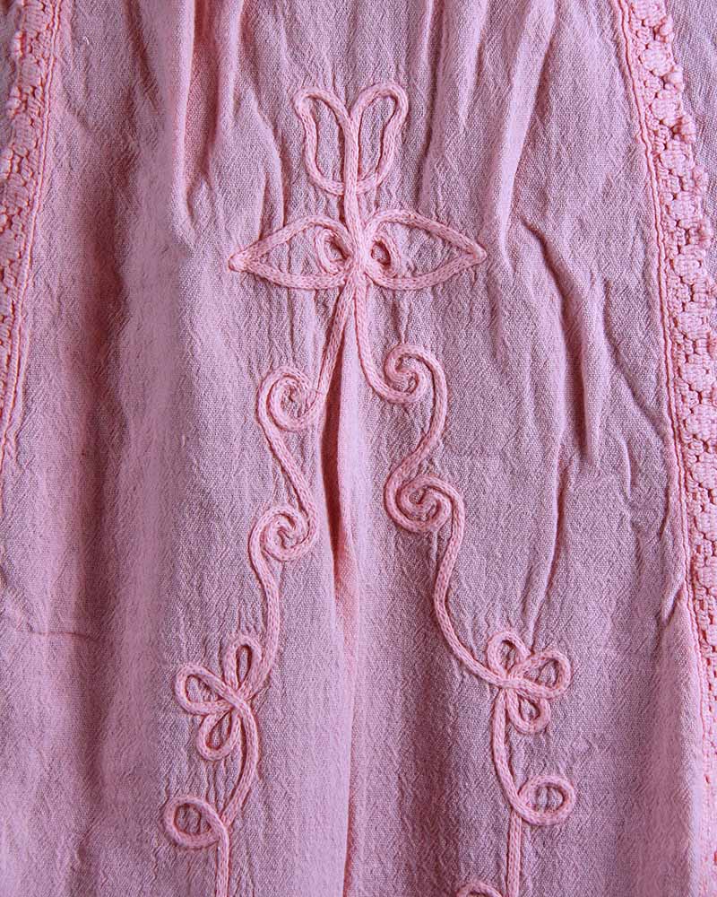 Applicazioni e dettagli artigianali dei vestiti estivi in puro cotone
